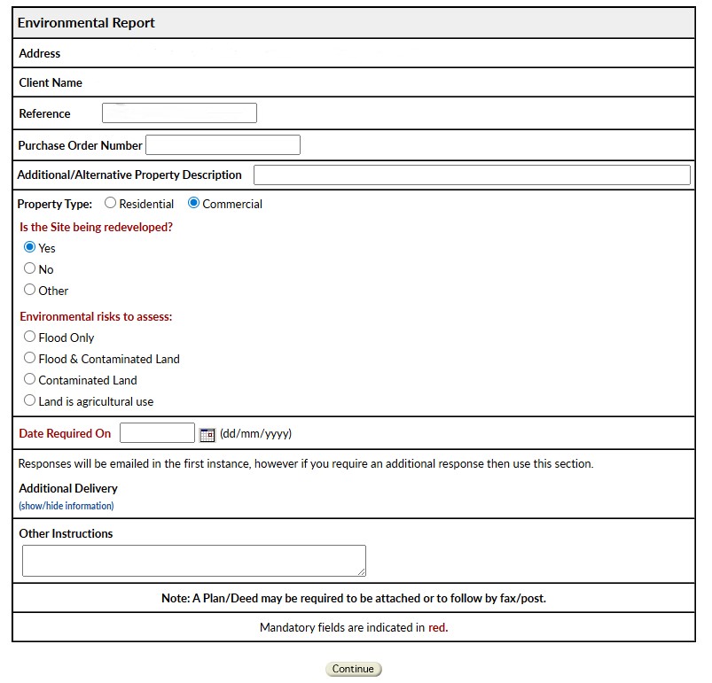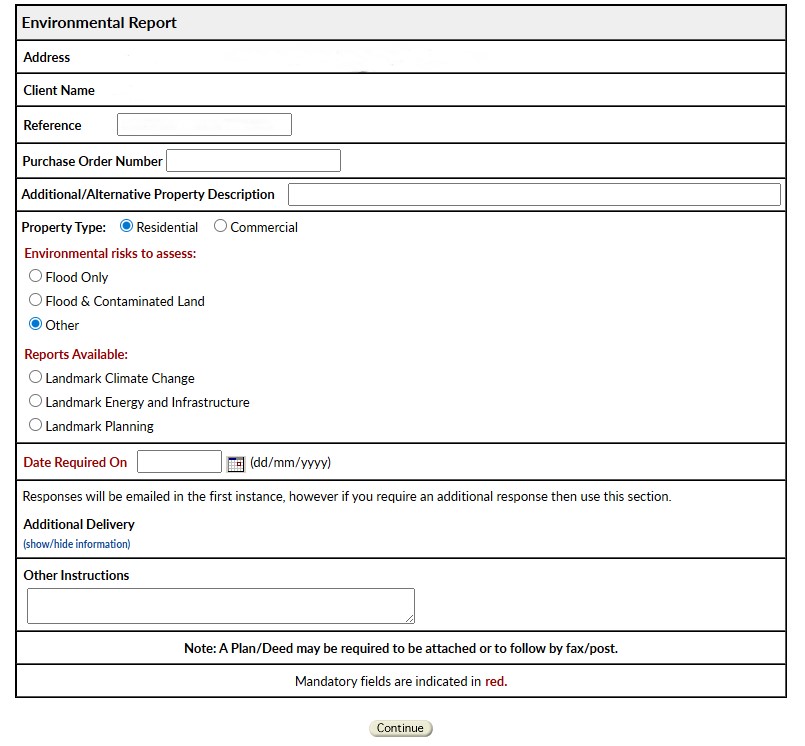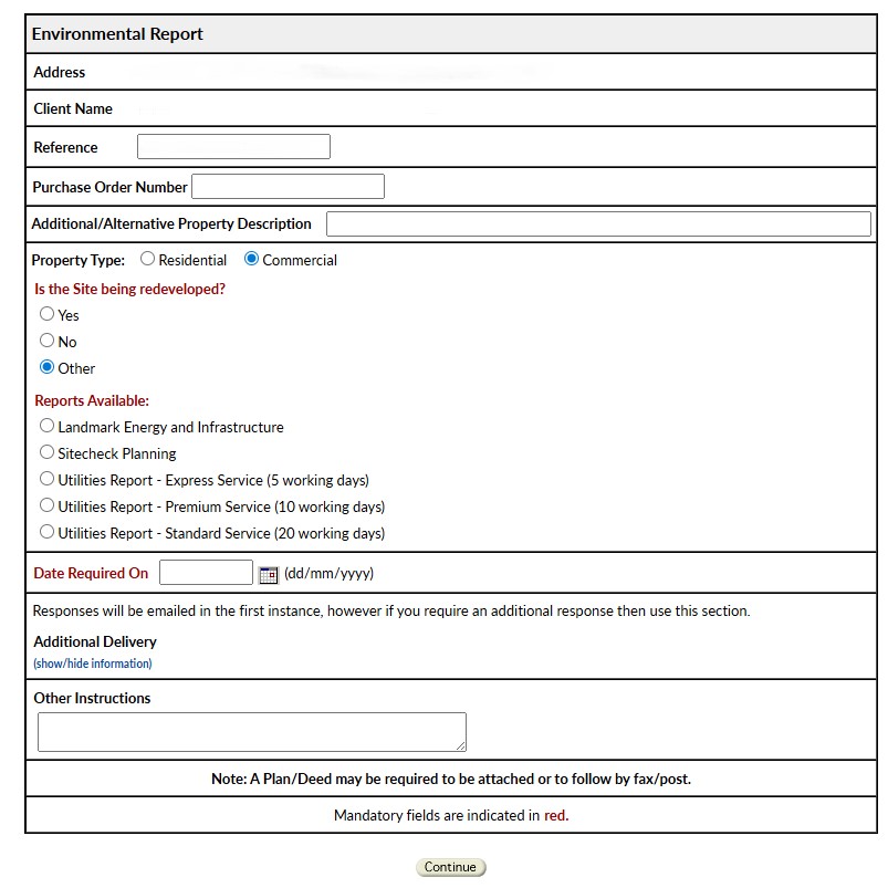 Other (for unique requirements, MB Online will recommend additional Landmark reports tailored to your property’s purpose and intended use)